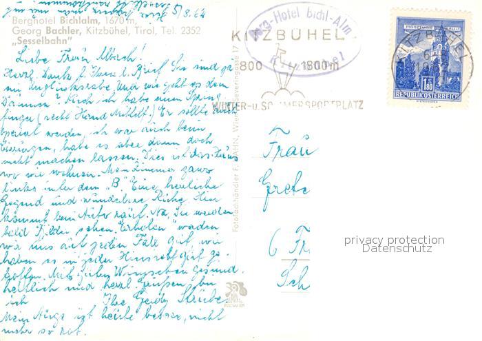 73368417 alte Postkarte Kitzbuehel Tirol Berghotel Bichlalm Georg Bachler Sesselbahn postalisch gelaufen Erhaltung siehe scans [LiesaD40] KatCode: 11390335070411