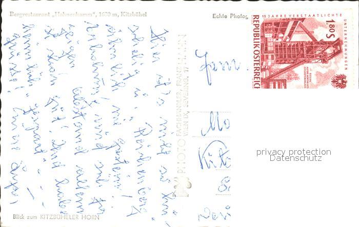 71982098 alte Postkarte Kitzbuehel Tirol Bergrestaurant Hahnenkamm postalisch gelaufen Erhaltung siehe scans KatCode: 11390335070411