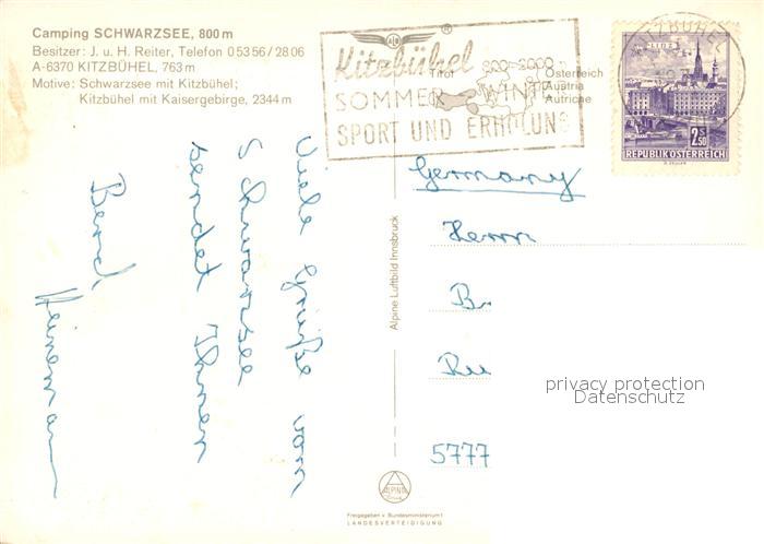 73168814 alte Postkarte Kitzbuehel Tirol Fliegeraufnahme Camping Schwarzsee postalisch gelaufen Erhaltung siehe scans [KathaD81] KatCode: 11390335070411