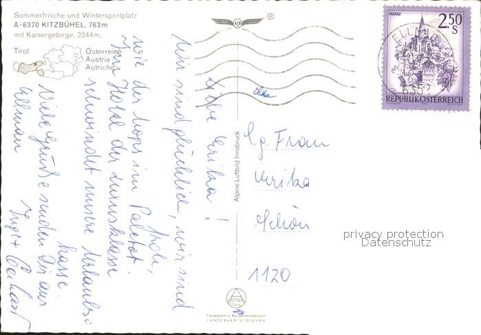 71914395 alte Postkarte Kitzbuehel Tirol Fliegeraufnahme mit Kaisergebirge postalisch gelaufen KatCode: 11390335070411