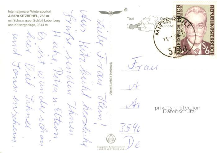 73513375 alte Postkarte Kitzbuehel Tirol Fliegeraufnahme Winterlandschaft postalisch gelaufen Erhaltung siehe scans [KathaD81] KatCode: 11390335070411