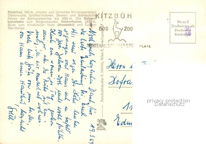 73756874 alte Postkarte Kitzbuehel Tirol Grossseilbahnen Sessel- u. Schlepplifte postalisch gelaufen Erhaltung siehe scans [LiesaD40] KatCode: 11390335070411