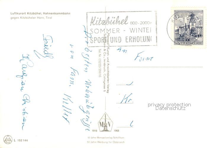 73073699 alte Postkarte Kitzbuehel Tirol Hahnenkammbahn mit Kitzbueheler Horn postalisch gelaufen Erhaltung siehe scans [FriedD77] KatCode: 11390335070411