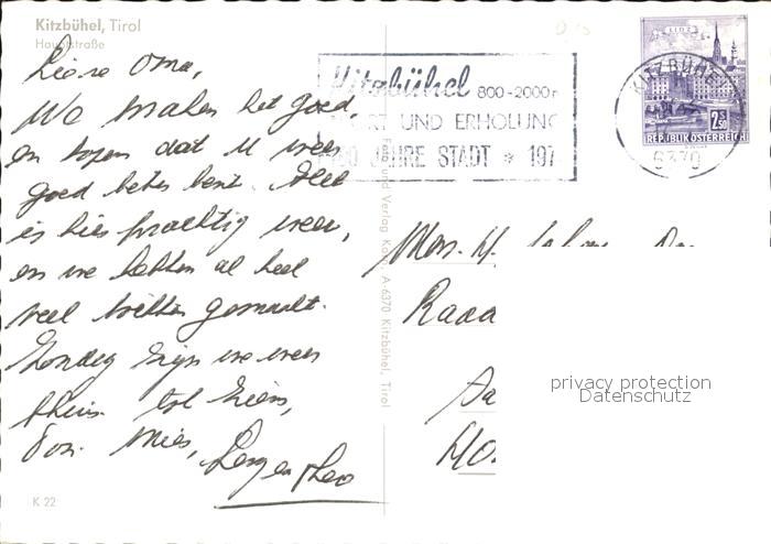 72451686 alte Postkarte Kitzbuehel Tirol Hauptstrasse postalisch gelaufen Erhaltung siehe scans KatCode: 11390335070411