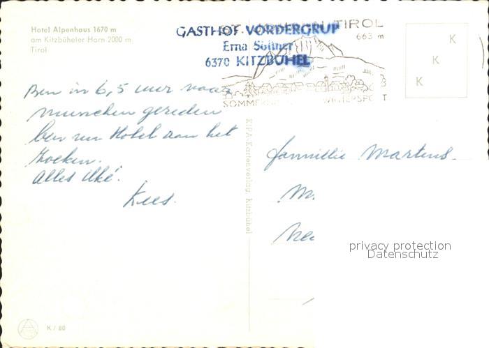 72270766 alte Postkarte Kitzbuehel Tirol Hotel Alpenhaus am Kitzbueheler Horn Fernsicht Alpenpanorama postalisch gelaufen Erhaltung siehe scans KatCode: 11390335070411