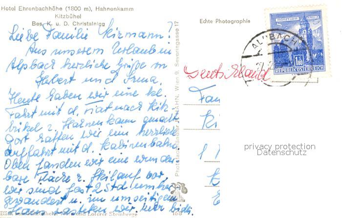 72981803 alte Postkarte Kitzbuehel Tirol Hotel Ehrenbachhoehe Hahnenkamm Wintersportplatz Alpen postalisch gelaufen Erhaltung siehe scans [FriedD77] KatCode: 11390335070411