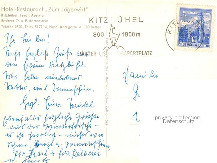 13171051 alte Postkarte Kitzbuehel Tirol Hotel Restaurant Zum Jaegerwirt postalisch gelaufen Erhaltung siehe scans [KathaD81] KatCode: 11390335070411