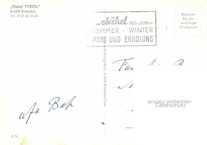 72863461 alte Postkarte Kitzbuehel Tirol Hotel Tyrol postalisch gelaufen Erhaltung siehe scans [NatalD47] KatCode: 11390335070411