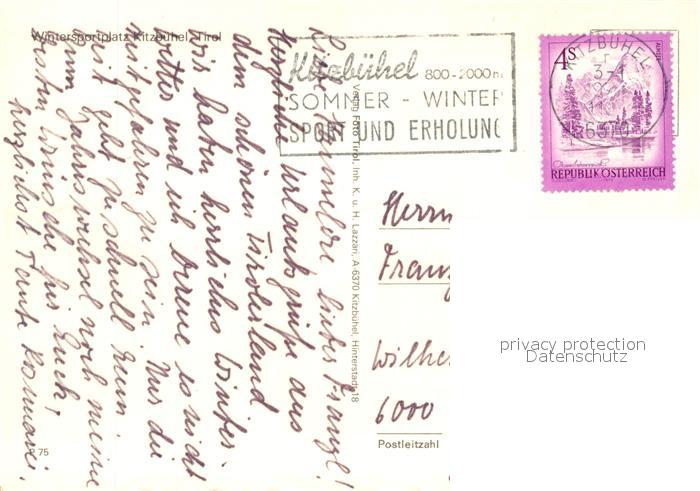 73590376 alte Postkarte Kitzbuehel Tirol Innenstadt Fahnen im Winter Wintersportplatz Alpen postalisch gelaufen Erhaltung siehe scans [FriedD77] KatCode: 11390335070411