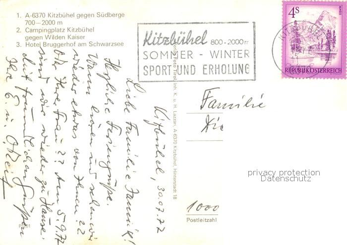 73522174 alte Postkarte Kitzbuehel Tirol Kirche Suedberge Campingplatz Wilder Kaiser Hotel Bruggerhof am Schwarzsee postalisch gelaufen Erhaltung siehe scans [WerneD78] KatCode: 11390335070411