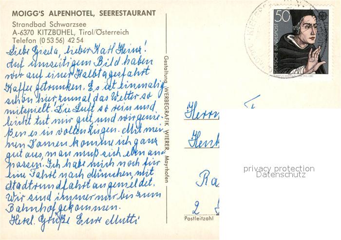 13220419 alte Postkarte Kitzbuehel Tirol Moiggs Alpenhotel Seerestaurant Badestellen postalisch gelaufen Erhaltung siehe scans [LiesaD40] KatCode: 11390335070411