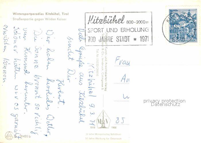 72707277 alte Postkarte Kitzbuehel Tirol Strassenpartie mit Wildem Kaiser postalisch gelaufen Erhaltung siehe scans [WerneD78] KatCode: 11390335070411