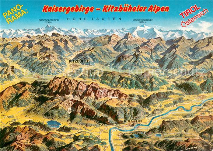 73636468 Kitzbuehel Tirol und Umgebung aus der Vogelperspektive Kaisergebirge Kitzbueheler Alpen postalisch nicht gelaufen Reliefkarte Erhaltung siehe scans [FriedD77] KatCode: 11390335070411