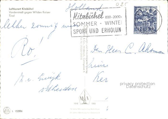 72451698 alte Postkarte Kitzbuehel Tirol Vorderstadt gegen Wilden Kaiser postalisch gelaufen Erhaltung siehe scans KatCode: 11390335070411