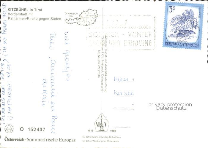 72254307 alte Postkarte Kitzbuehel Tirol Vorderstadt mit Katharinen Kirche postalisch gelaufen Erhaltung siehe scans KatCode: 11390335070411