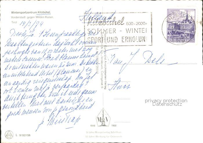 72093027 alte Postkarte Kitzbuehel Tirol Vorderstadt mit Wildem Kaiser postalisch gelaufen Erhaltung siehe scans KatCode: 11390335070411