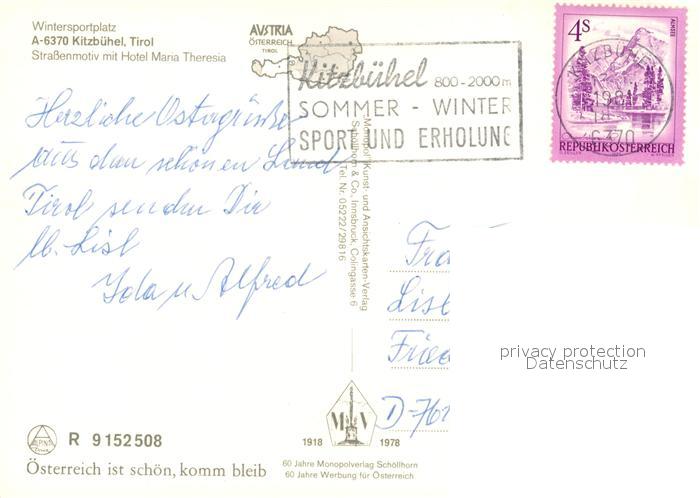 13326947 alte Postkarte Kitzbuehel Tirol Wintersportplatz Hotel Maria Theresia postalisch gelaufen Erhaltung siehe scans [KathaD81] KatCode: 11390335070411