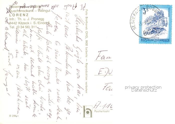 73222084 alte Postkarte Kitzeck Sausal Buschenschank Lorenz postalisch gelaufen Erhaltung siehe scans [KathaD81] KatCode: 11390225061019