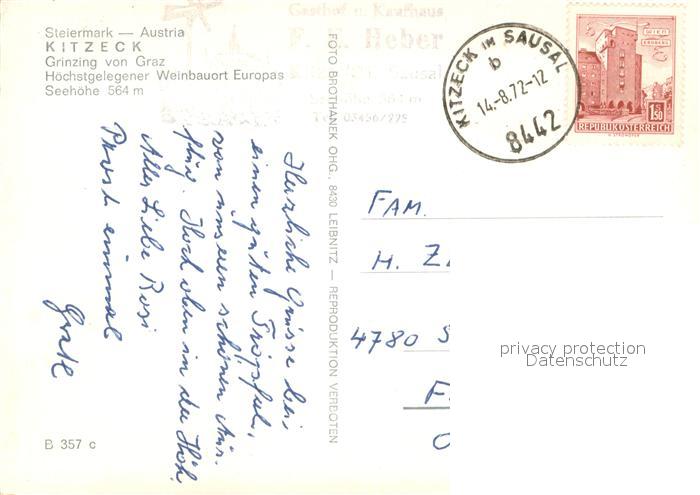 73628945 alte Postkarte Kitzeck Sausal Panorama Kirche Windrad Gaststube postalisch gelaufen Erhaltung siehe scans [WerneD78] KatCode: 11390225061019