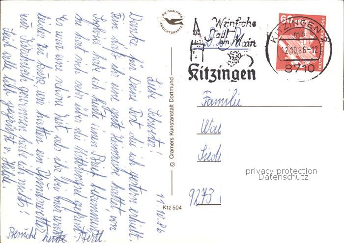72447784 alte Postkarte Kitzingen Main postalisch gelaufen Erhaltung siehe scans KatCode: 11110009675141
