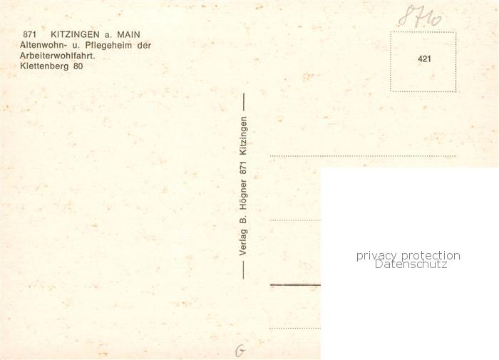 73865964 Kitzingen Main Altenwohn- und Pflegeheim der Arbeiterwohlfahrt postalisch nicht gelaufen Erhaltung siehe scans [FriedD77] KatCode: 11110009675141