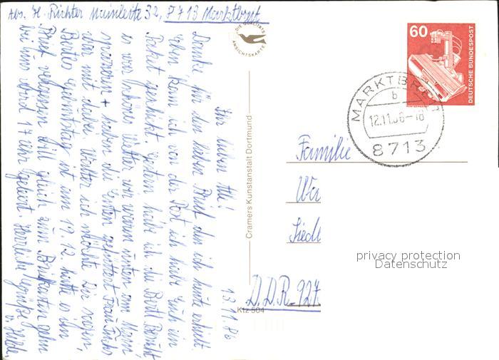 72425802 alte Postkarte Kitzingen Main Burg Strasse Park Schloss Kirche postalisch gelaufen Erhaltung siehe scans KatCode: 11110009675141