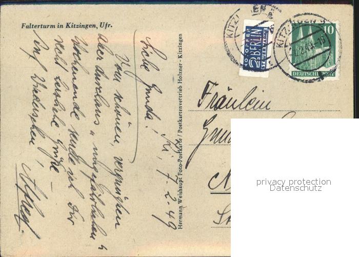 72514757 alte Postkarte Kitzingen Main Falterturm postalisch gelaufen Erhaltung siehe scans KatCode: 11110009675141
