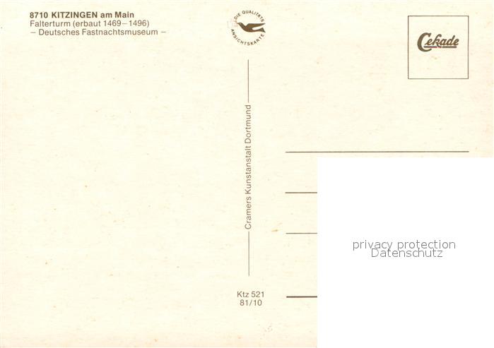 73672063 Kitzingen Main Falterturm Deutsches Fastnachtsmuseum postalisch nicht gelaufen Erhaltung siehe scans [FriedD77] KatCode: 11110009675141