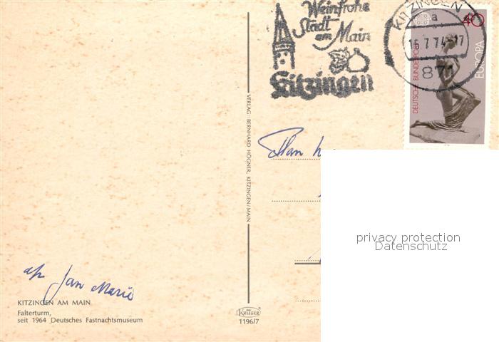 72943839 alte Postkarte Kitzingen Main Falterturm Fastnachtsmuseum postalisch gelaufen Erhaltung siehe scans [FriedD77] KatCode: 11110009675141