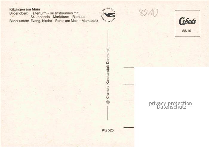 74054369 Kitzingen Main Falterturm Kiliansbrunnen Marktplatz Ev Kirche Mainpromenade Mainpartie postalisch nicht gelaufen Erhaltung siehe scans [WerneD78] KatCode: 11110009675141