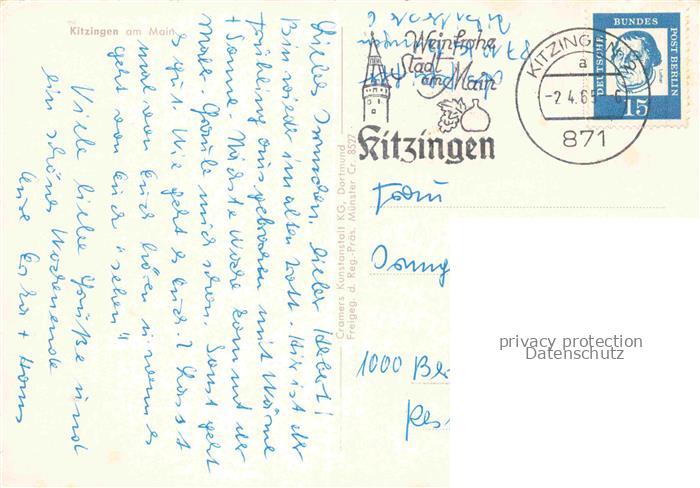 74043024 alte Postkarte Kitzingen Main Fliegeraufnahme postalisch gelaufen Erhaltung siehe scans [WerneD78] KatCode: 11110009675141