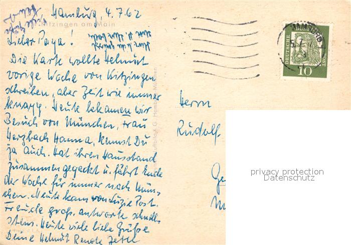 73082622 alte Postkarte Kitzingen Main Fliegeraufnahme Schwimmbad postalisch gelaufen Erhaltung siehe scans [KathaD81] KatCode: 11110009675141