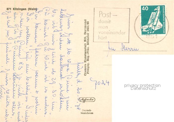 73656184 alte Postkarte Kitzingen Main Fliegeraufnahme postalisch gelaufen Erhaltung siehe scans [WerneD78] KatCode: 11110009675141