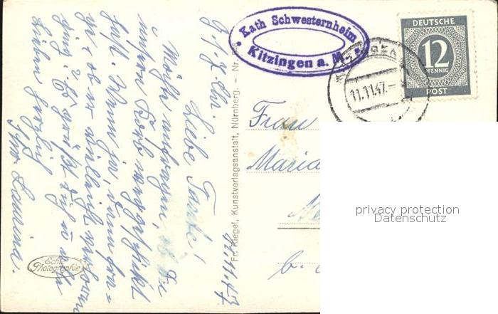 alte Postkarte Kitzingen Main Kath Kirche Portal postalisch gelaufen Erhaltung siehe scans