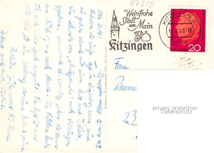 73865259 alte Postkarte Kitzingen Main Kirche Postamt Hochhaus Falterturm Freibad Boehmerwald-Strasse Jugendheim postalisch gelaufen Erhaltung siehe scans [FriedD77] KatCode: 11110009675141