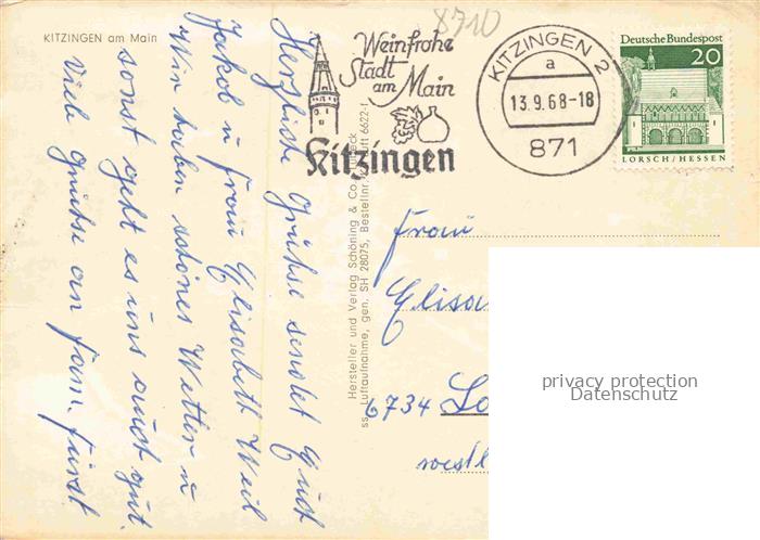 74054393 alte Postkarte Kitzingen Main Mainpartie Fliegeraufnahme postalisch gelaufen Erhaltung siehe scans [WerneD78] KatCode: 11110009675141