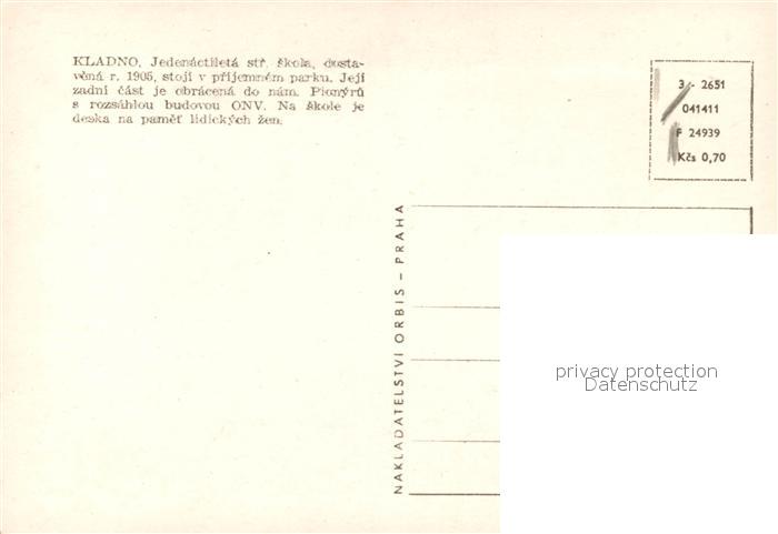 13597996 Kladno Jedenactileta str skola postalisch nicht gelaufen Erhaltung siehe scans [WerneD78] KatCode: 11520