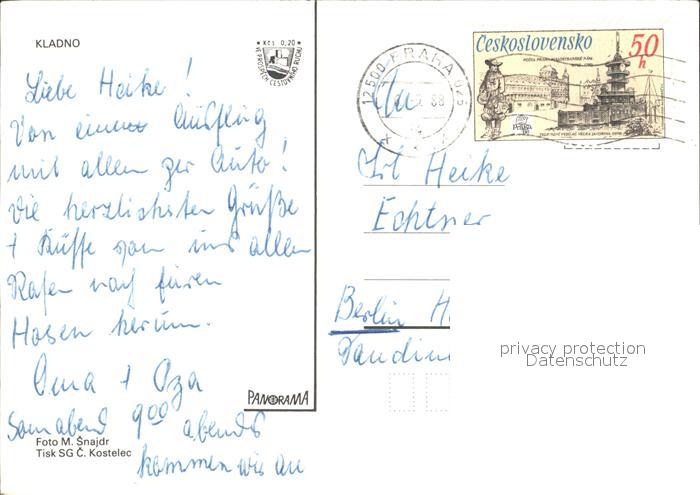 old postcard Kladno Tschechien postalisch gelaufen Erhaltung siehe scans