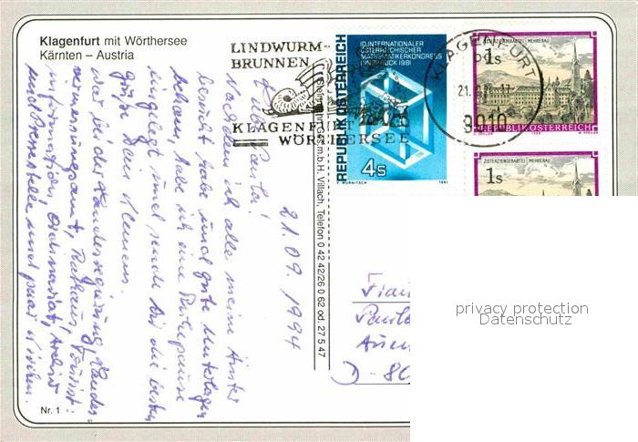 72849255 alte Postkarte Klagenfurt Woerthersee Fliegeraufnahme postalisch gelaufen Erhaltung siehe scans [KathaD81] KatCode: 11390211020101