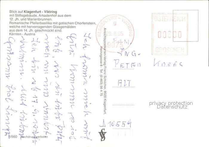 72444107 alte Postkarte Klagenfurt Woerthersee Fliegeraufnahme Stiftsgebaeude Arkadenhof postalisch gelaufen Erhaltung siehe scans KatCode: 11390211020101