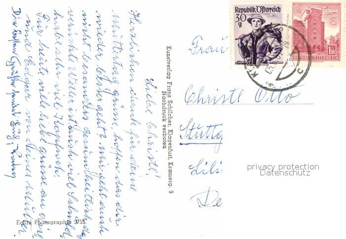 72760424 alte Postkarte Klagenfurt Woerthersee Gesamtansicht mit Alpenpanorama Landhaus Stadttheater Lindwurmbrunnen postalisch gelaufen Erhaltung siehe scans [FriedD77] KatCode: 11390211020101