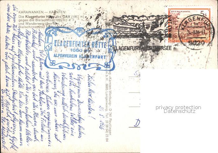 72540264 alte Postkarte Klagenfurt Woerthersee Klagenfurter Huette postalisch gelaufen Erhaltung siehe scans [AndreD76 kt119box] KatCode: 11390211020101