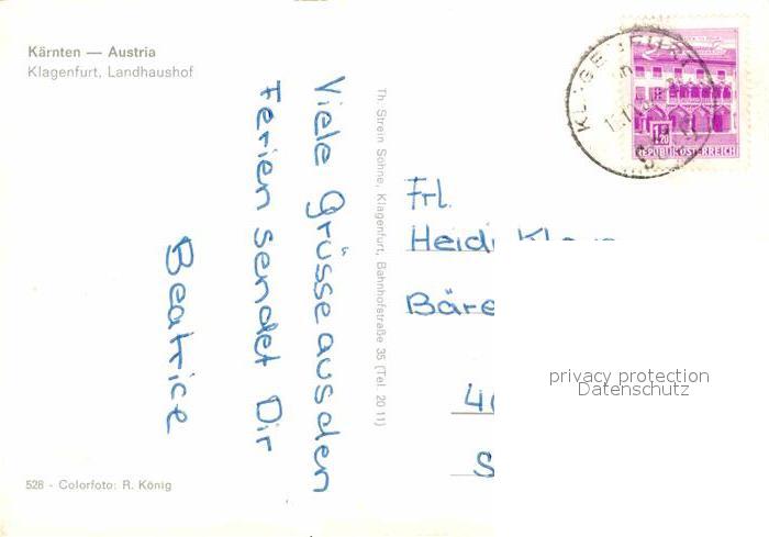72654954 alte Postkarte Klagenfurt Woerthersee Landhaushof postalisch gelaufen Erhaltung siehe scans [LiesaD40] KatCode: 11390211020101