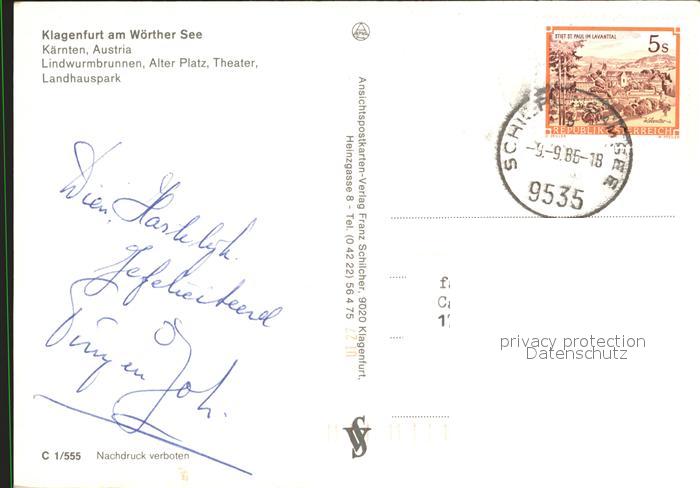 72238795 alte Postkarte Klagenfurt Woerthersee Lindwurmstadt postalisch gelaufen Erhaltung siehe scans KatCode: 11390211020101