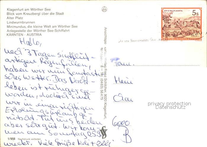 72464833 alte Postkarte Klagenfurt Woerthersee Lindwurmstadt postalisch gelaufen Erhaltung siehe scans KatCode: 11390211020101