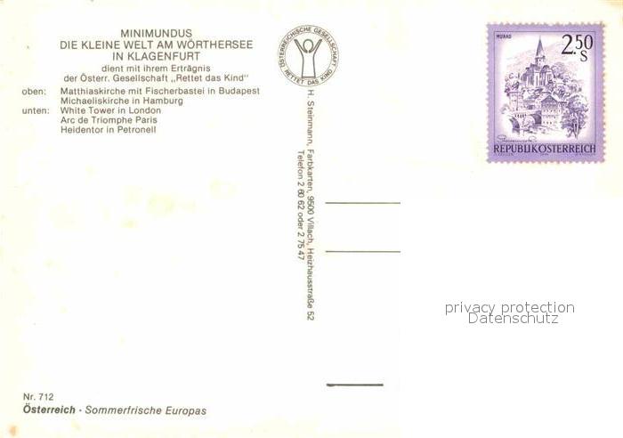 72700542 Klagenfurt Woerthersee Minimundus Matthiaskirche Budapest Michaeliskirche Hamburg White Tower London Arc de Triomphe Paris Heidentor in Petronell postalisch nicht gelaufen Erhaltung siehe scans [WerneD78] KatCode: 11390211020101