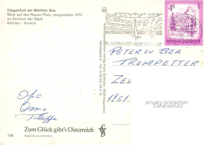 72906882 alte Postkarte Klagenfurt Woerthersee Neuer Plaz postalisch gelaufen Erhaltung siehe scans [LiesaD40] KatCode: 11390211020101