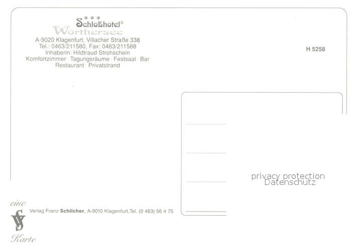 73047864 Klagenfurt Woerthersee Schlosshotel Woerthersee postalisch nicht gelaufen Erhaltung siehe scans [KathaD81] KatCode: 11390211020101