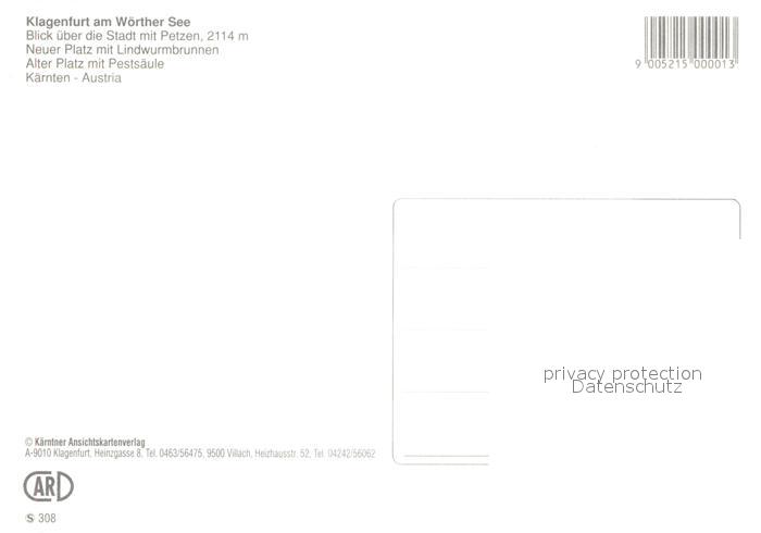 73598723 Klagenfurter H?tte Petzen Neuer und Alter Platz Lindwurmbrunnen Pests?ule postalisch nicht gelaufen Erhaltung siehe scans [PaolaD17] KatCode: