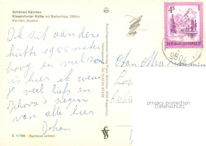 73328044 alte Postkarte Klagenfurter Huette Berghuette mit Bielschnitza Karawanken postalisch gelaufen Erhaltung siehe scans [FriedD77] KatCode: 11390211020201